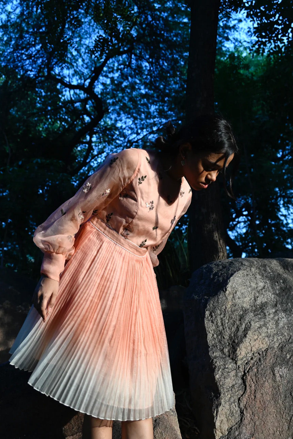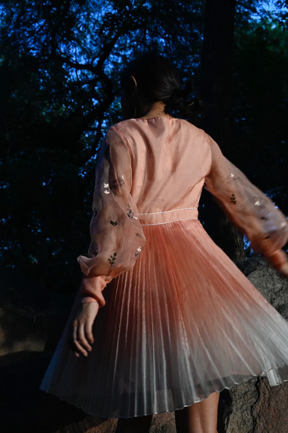 A beautiful and playful, embedded with signature floral buta embroideries all over the bodice and elegant soft bell sleeves